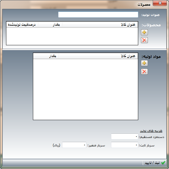 • محاسبه قیمت محصول بر اساس قیمت خرید مواد اولیه و هزینه های سربار و ثابت